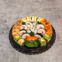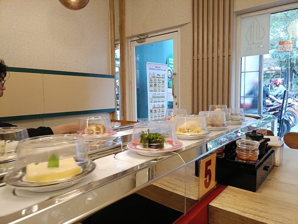 Sajian sushi segar dan ekonomis—paket salmon, salmon cream‑cheese, salmon sashimi & crunchy roll—plus ramen, takoyaki & bubble tea. Suasana nyaman ala food‑court, buka siang–malam, tersedia delivery & refill ocha gratis.