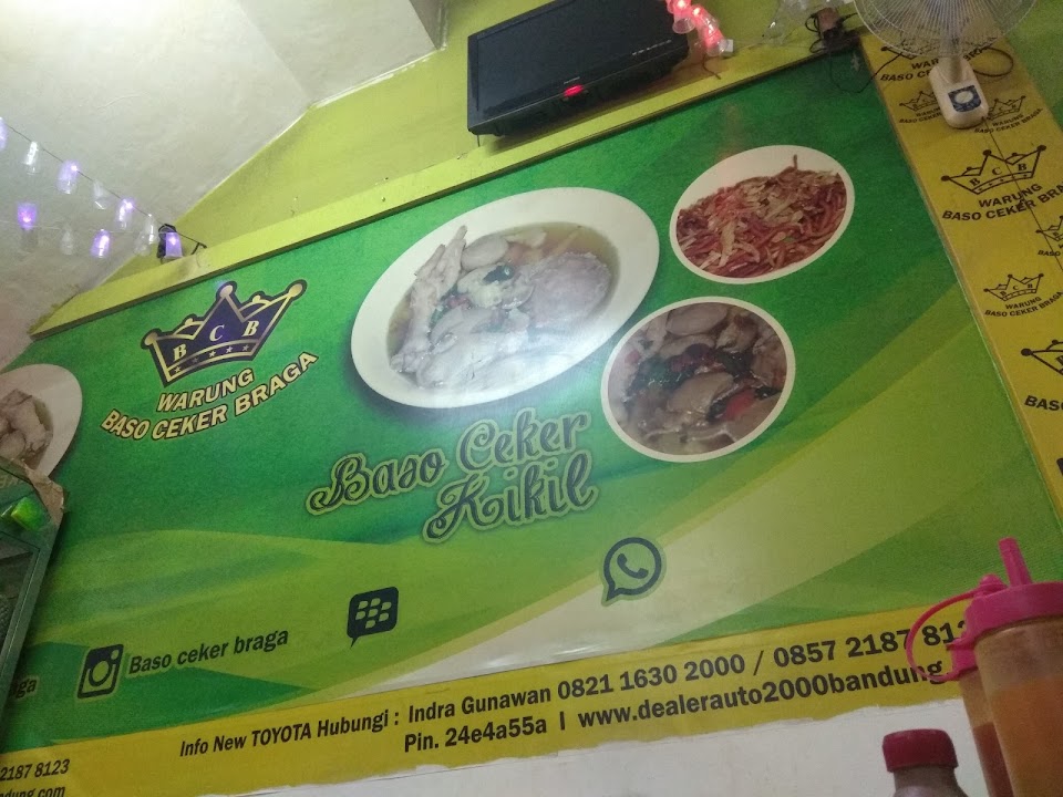 Baso Ceker Braga adalah kuliner legendaris di kawasan Braga, Bandung, terkenal dengan bakso urat, bakso halus, dan ceker ayam empuk dalam kuah kaldu gurih. Menu variatif seperti bakso, mie bakso, hingga batagor tersedia dengan harga terjangkau. Cocok untuk makan bersama keluarga atau teman, tersedia layanan makan di tempat dan bawa pulang. Rasanya otentik, porsi melimpah, dan selalu ramai pengunjung.