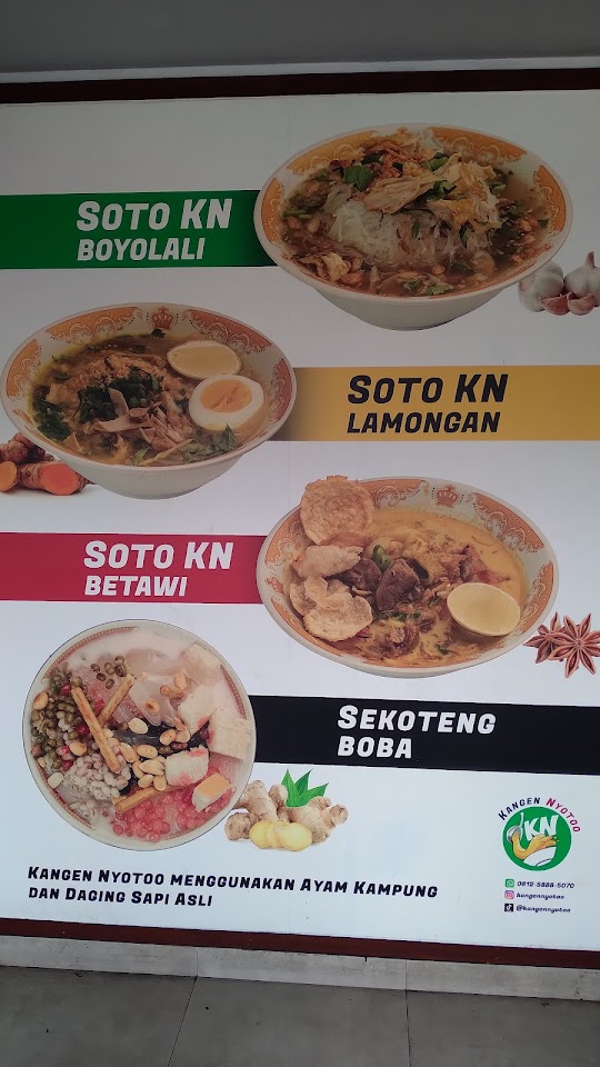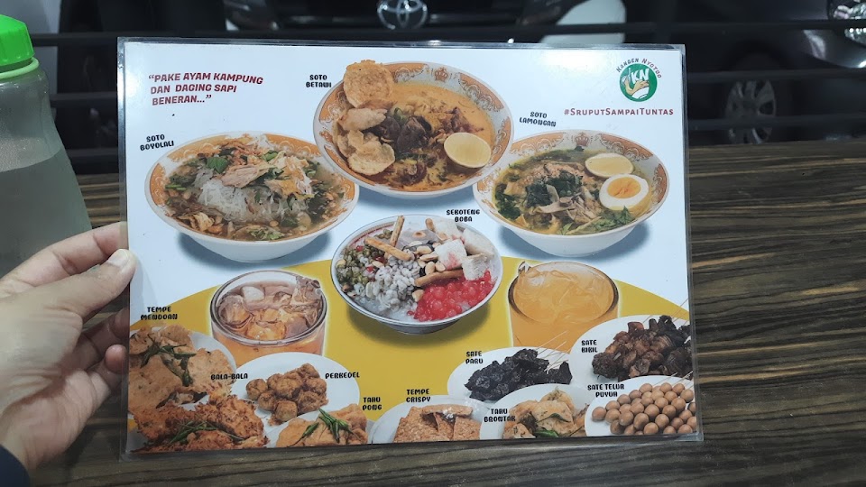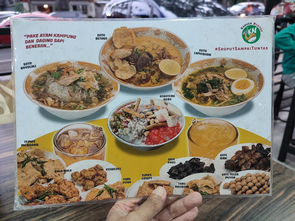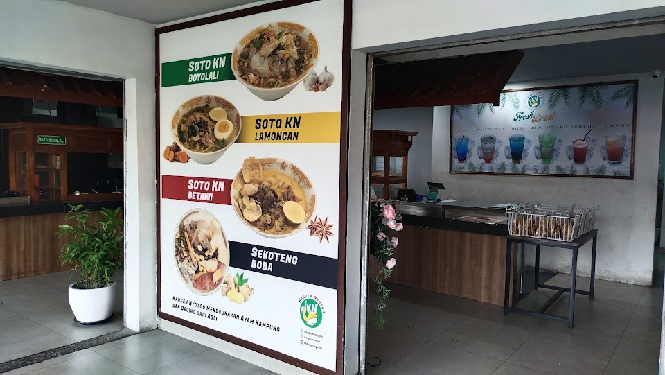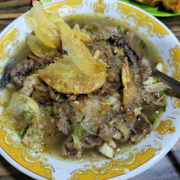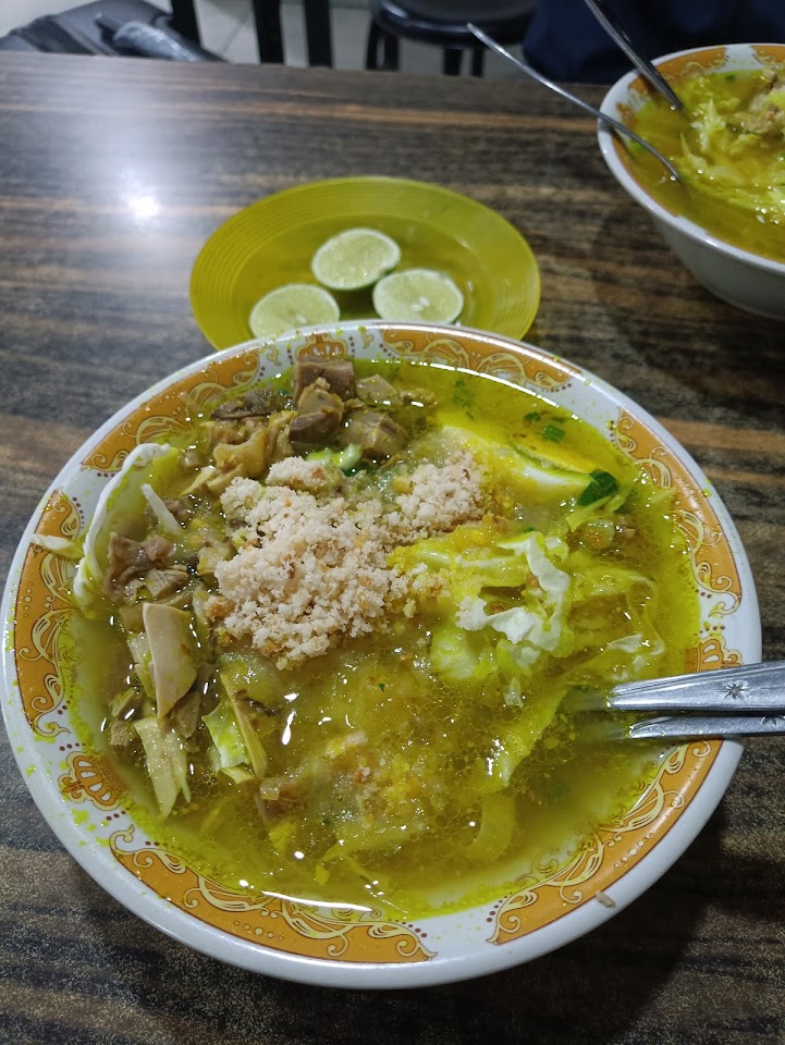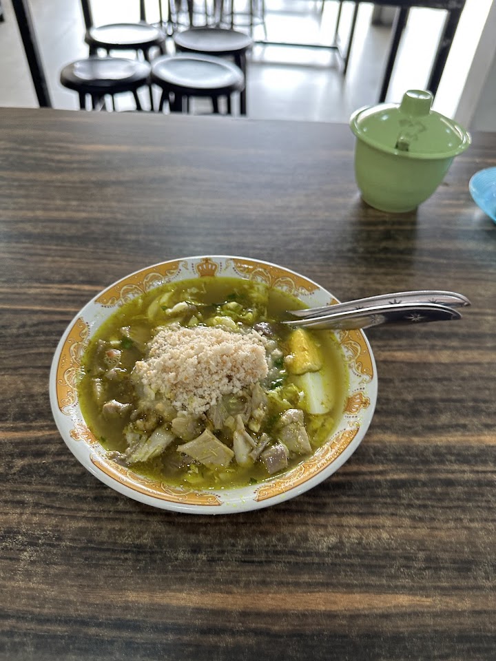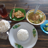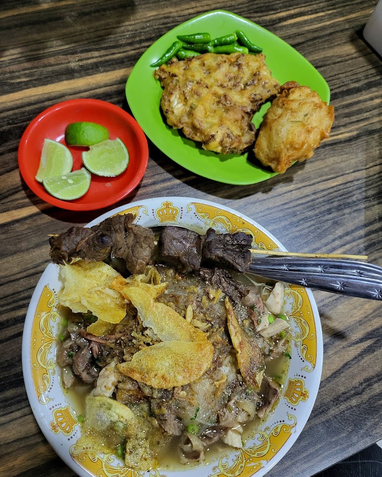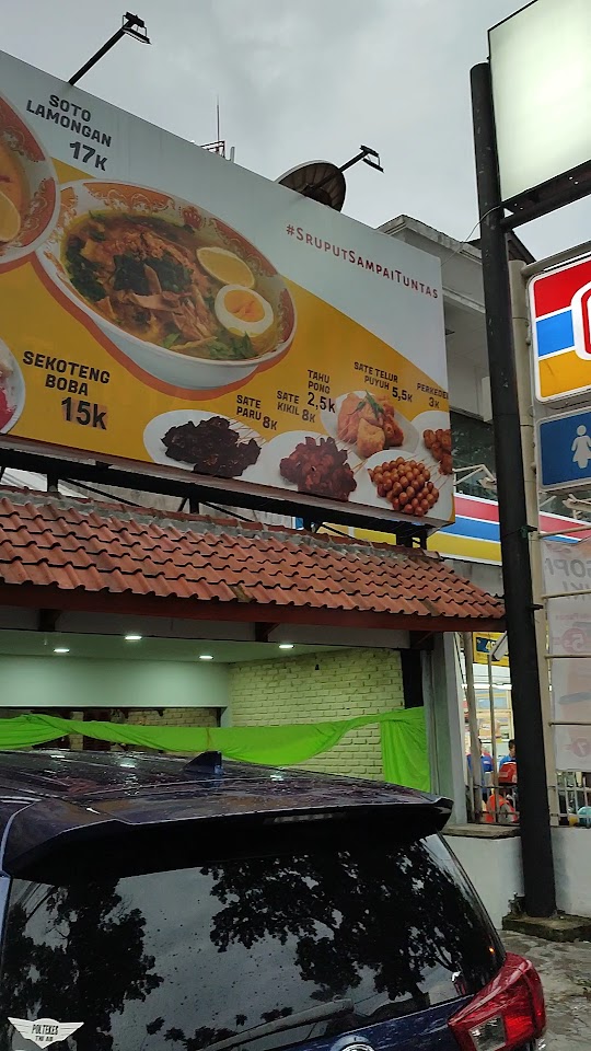 Nikmati tiga varian soto hangat—Lamongan, Boyolali & Betawi—dengan kuah kaya rempah, topping daging ayam kampung dan sapi, plus sate & gorengan sebagai pelengkap. Minuman unik seperti sekoteng boba ikut tersedia, buka pagi hingga malam.