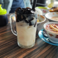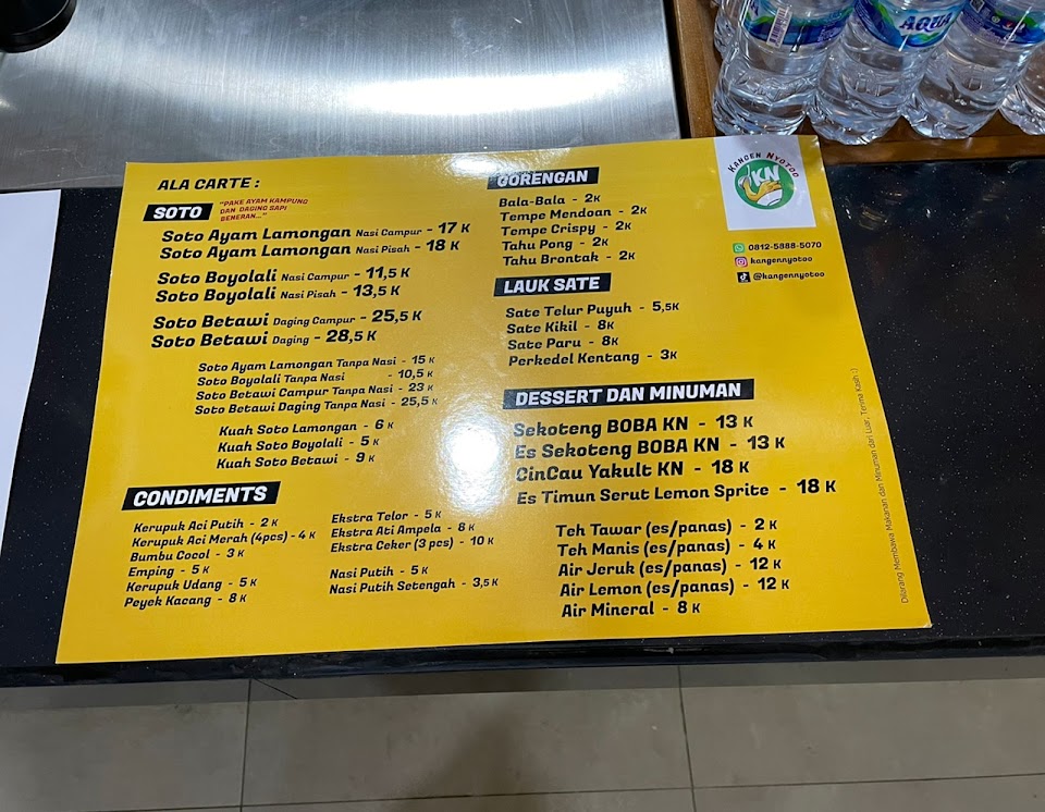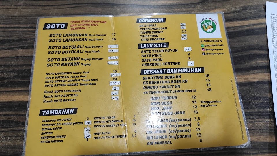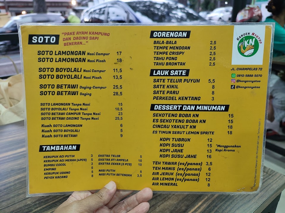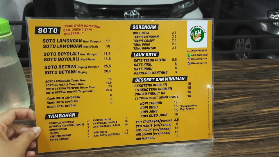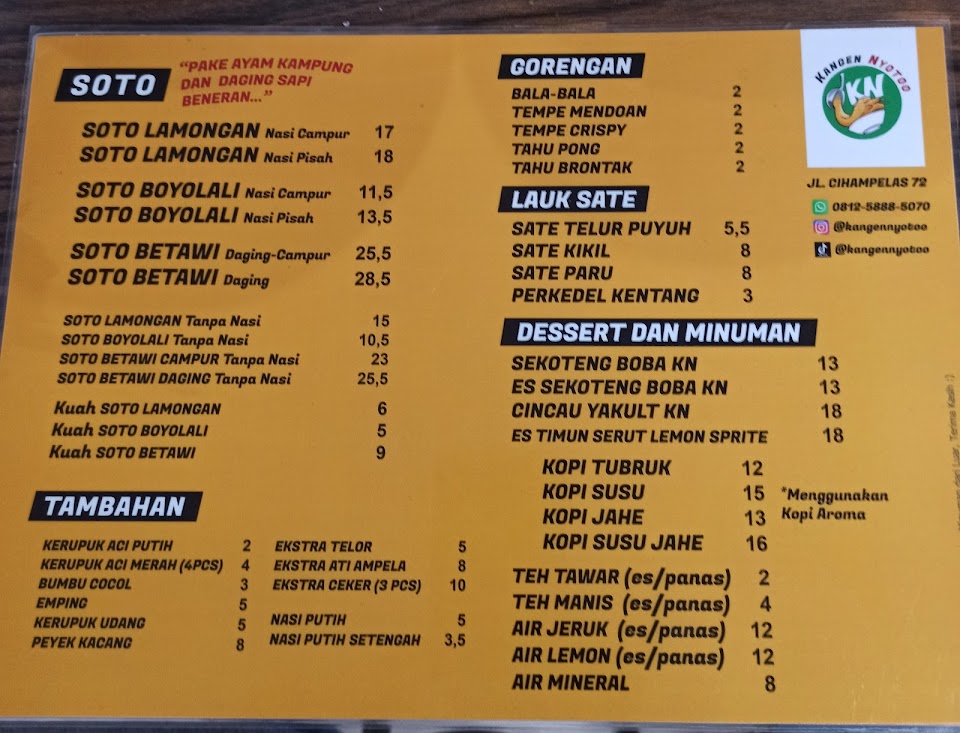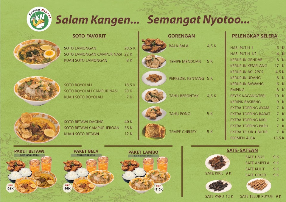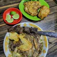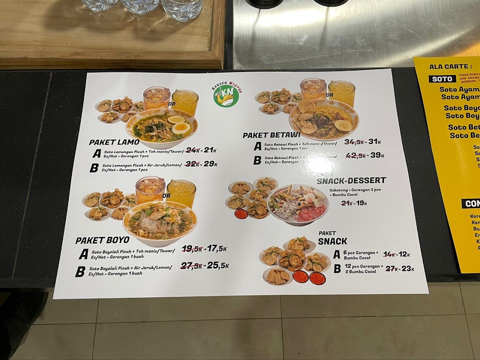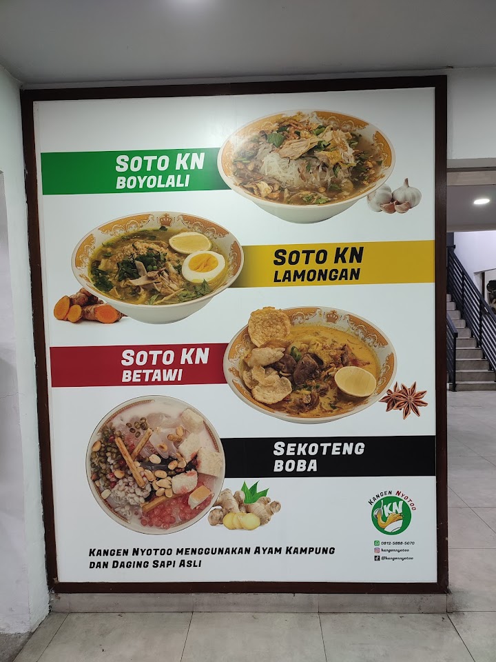 Nikmati tiga varian soto hangat—Lamongan, Boyolali & Betawi—dengan kuah kaya rempah, topping daging ayam kampung dan sapi, plus sate & gorengan sebagai pelengkap. Minuman unik seperti sekoteng boba ikut tersedia, buka pagi hingga malam.