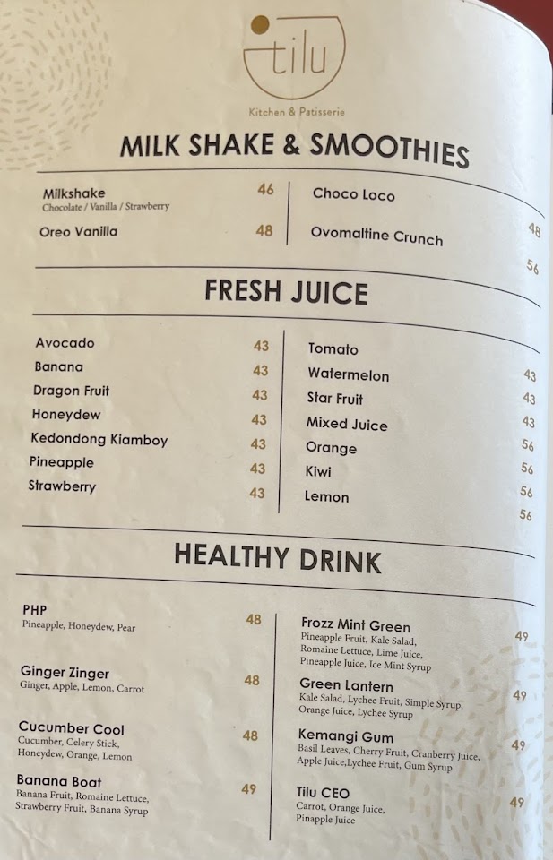 Tilu Kitchen & Patisserie menghadirkan pengalaman kuliner modern dengan menu internasional, pastry Eropa, dan hidangan Indonesia favorit. Suasana hangat, area luas, porsi besar, serta pelayanan ramah, cocok untuk brunch, makan keluarga, atau acara spesial di Bandung. Menu variatif mulai dari steak, nasi campur, hingga dessert kekinian.